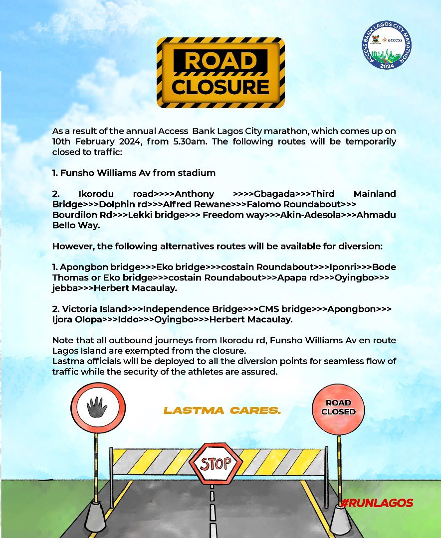 Traffic Advisory: Lagos Marathon Holds On Saturday, February 10th, 2024
