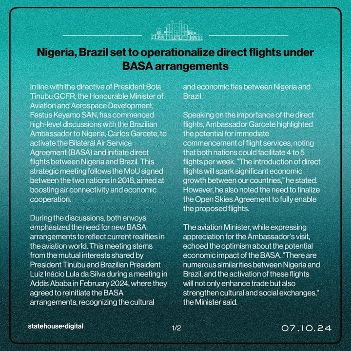 Nigeria, Brazil Set To Operationalize Direct Flights Under BASA Arrangements