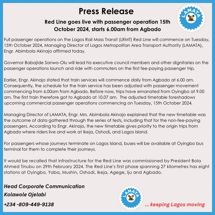LAMATA Resumes Red Line Passenger Operations, Following A Halt Last Week -